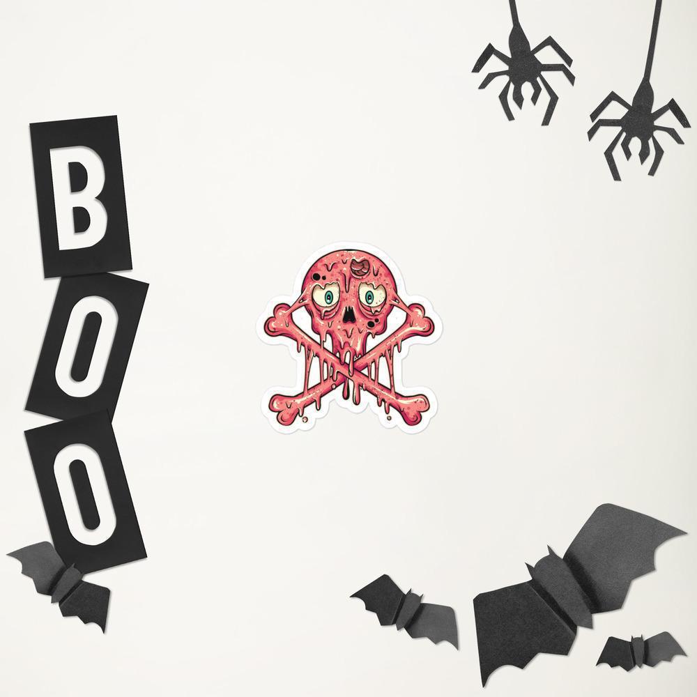 Bring some changes to your life, and your lifestyle, and this magnificent and unique cute skull stickers would perfectly do the job! As you may have noticed, it has really neat and amazing details, starting with the astonishing black outlines that highlight every detail on this masterpiece, and the rest is looking like pink glue dripping from it, also the skeleton head has round eyes, the rest of his parts are covered by the slime, and he got crossbones under him.