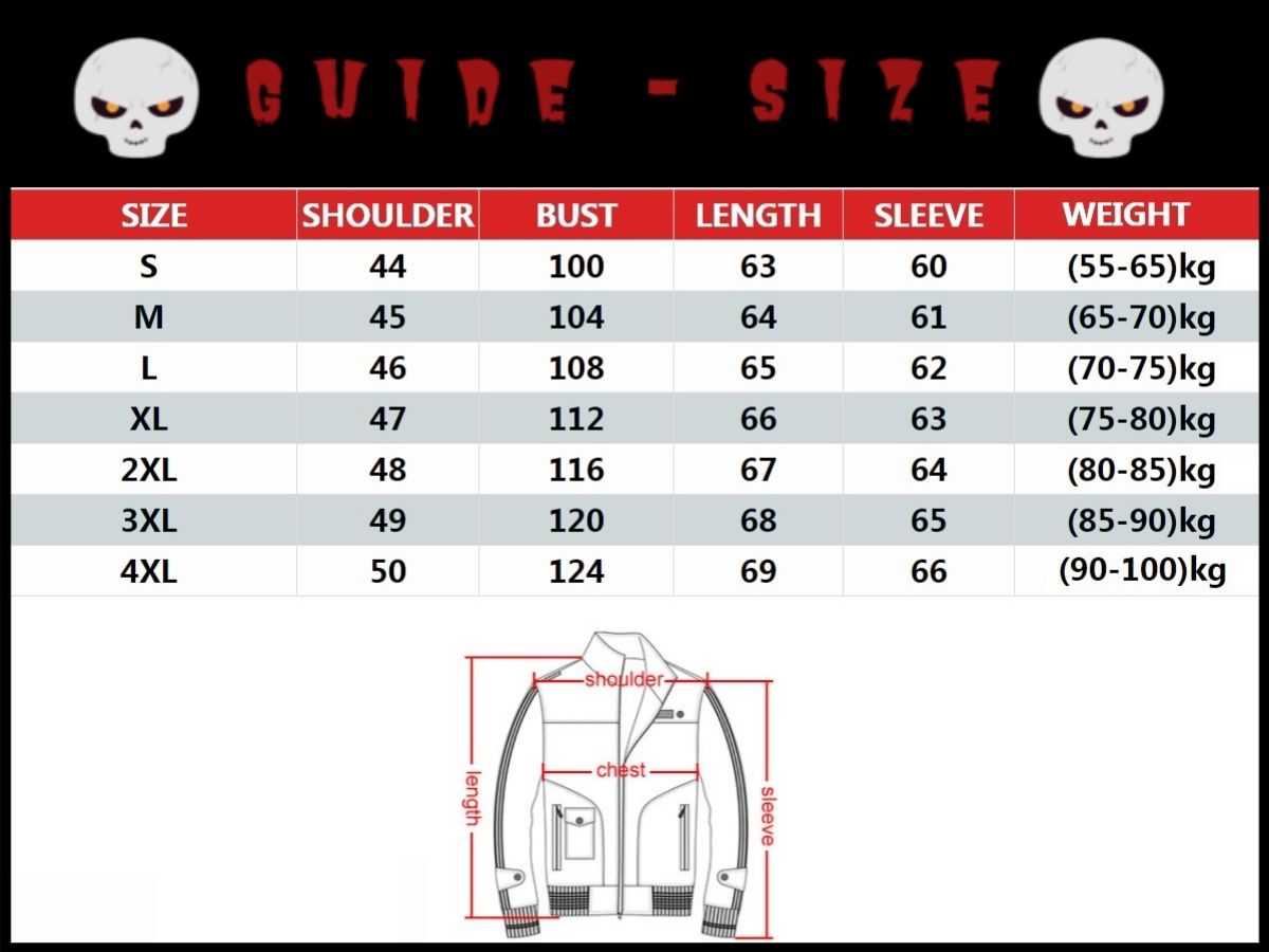☠️ Don't forget to refer to the Sizing Guide! As the jacket is quite small, our team recommends 1 size up as a security measure. ☠️