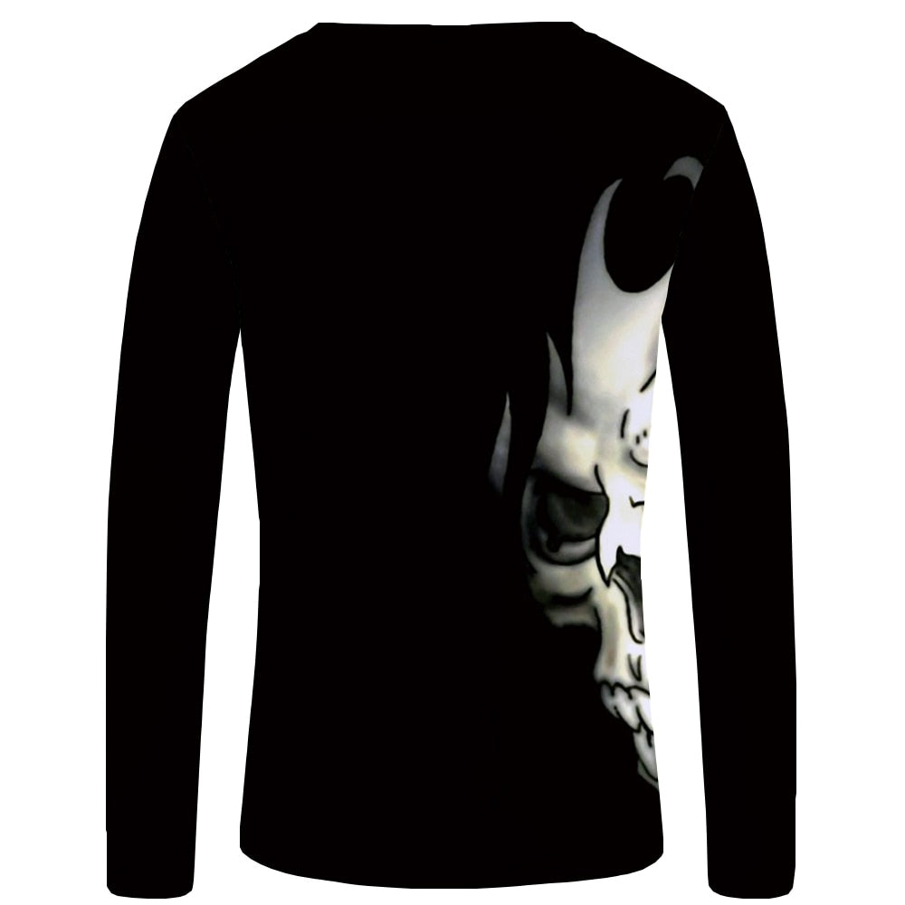 Are you looking for a shirt that will match your personality? Shy but dangerous? Then this astonishing shirt is made for you! side skull long sleeve shirt! As you can see, it has a gorgeous design, starting with the black that is the main color of this product perfectly sober, but with half the head of a white skull on the side. This skull is made in white flames noticeable on his head, he also has a scary look with his frowning eyebrows and an amazing set of teeth.