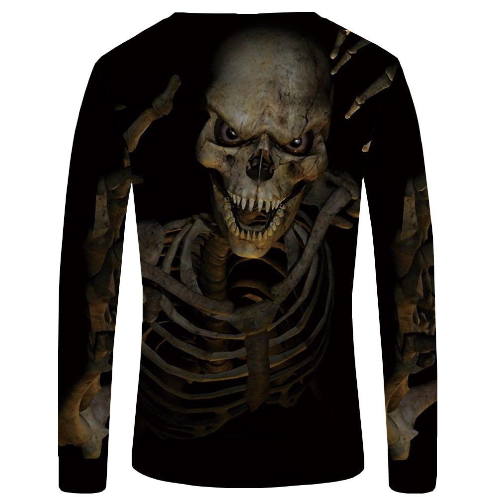 Do you want to be the most respected person? Do you want everyone to be feared by just the fact of saying your name? Then this astonishing and unique scary skull long sleeve shirt is exactly what you need! As you can see, it has a gorgeous and creepy design, starting with the shirt that is totally black and highlighting the skeleton in the middle. the skull looks pretty realistic, with his percent eyes, his sharp teeth with a long smile, and his long scary arms that could grab you to drag you to hell!