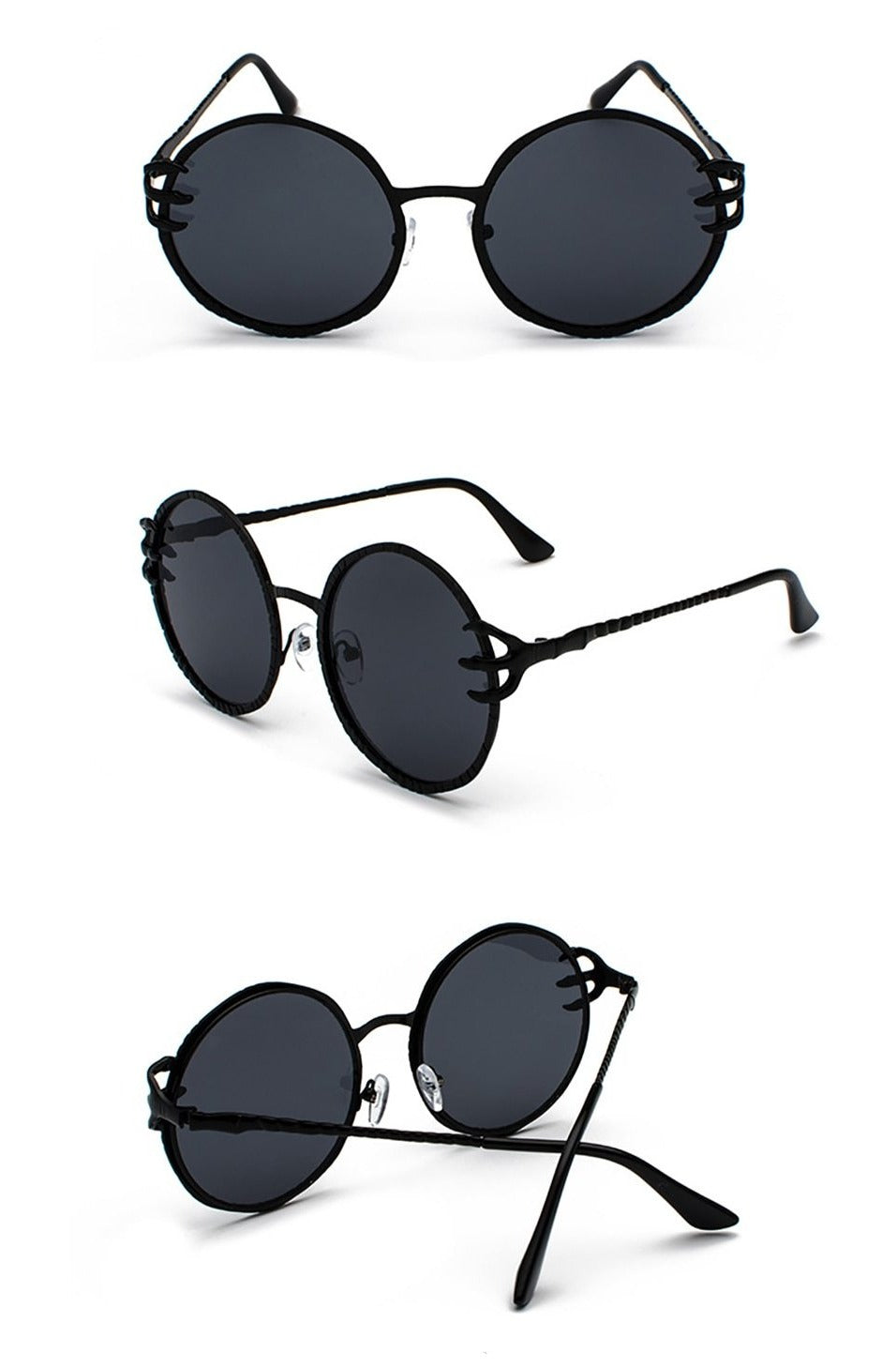 Who said that gothic style can be worn only during winter? Keep your style even during summer with these unique skull gothic sunglasses that will make everyone astonished while you wear them. As you may have noticed, this type of glass is called “round eye” because of the shape of the lenses and the rims, the whole sunglasses are painted in black and have a really sober design and have really thin temples with demon hands that have sharp fingers holding the rims.