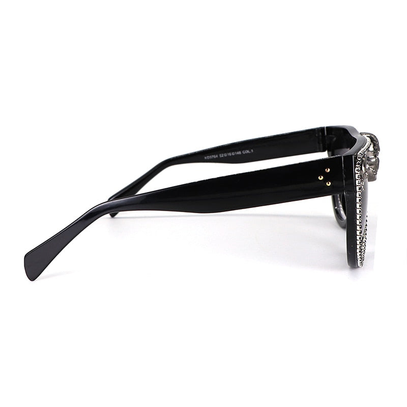 Ladies! If you girls are bored of classic and simple sunglasses, check out these skull sunglasses for women that will give you style and drip forever! Starting with the neat and gorgeous details on every inch of these sunglasses. In addition to that, the sunglasses are totally black, with multiple black gems all over the rims, it also has a skeleton head with crossbones behind him on each side of the end pieces, with a big and smiling skeleton head on the bridge of the sunglasses.